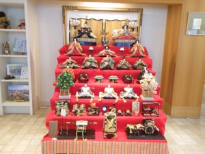 校内を念入りに掃除して、受験生を迎える準備をしました。2階の事務局前には、恒例のおひなさまも飾られました。