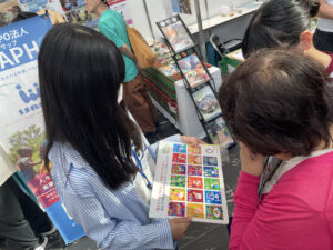 今回の参加は、国際協力を推進する団体「野毛坂グローカル」様よりご紹介いただき、実現しました。生徒たちは、野毛坂グローカルのブースおよび連携団体のブースにて、アンケートや資料の配布、来場者との対話、販売サポートなどを行いました。