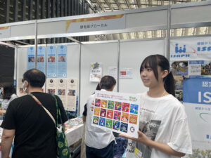 特に印象的だったのは、来場者にSDGsの中で関心のあるゴールにシールを貼ってもらう活動や、「誰ひとり取り残さない」小論文・イラストコンテストの紹介です。最初は緊張していた生徒たちも、他校の生徒と協力しながら、次第に自信を持って活動に取り組む姿が見られました。