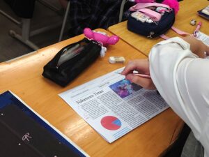 9月29日(月)に、英字新聞プロジェクト「NAKAMURA TIMES」の活動を行いました。生徒たちは夏前からこのプロジェクトに取り組んでおり、今回は各グループが仕上げた新聞に対して、講師の大門先生からフィードバックをいただきました。