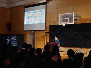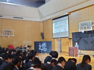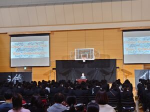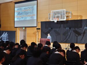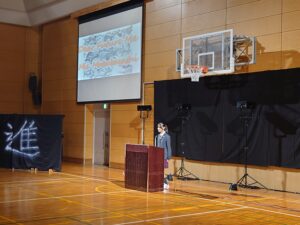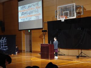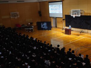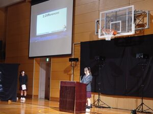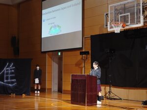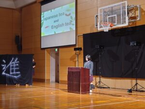10月24日(金)に「English Day」を実施しました。これは学内での英語の暗唱発表会となります。各学年の代表生徒がステージに立ち、英語でのスピーチや詩の暗唱を披露しました。各学年の代表生徒は、それぞれ何度も練習を重ねてこの日に臨みました。本番では、緊張の中でも堂々とした姿で発表に挑み、発音や表現力だけでなく、英語を通して伝えたい思いをしっかりと届けてくれました。会場では、保護者や同級生が温かく見守り、発表が終わるたびに大きな拍手が送られました。
