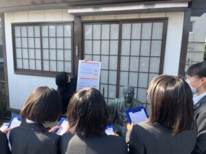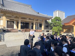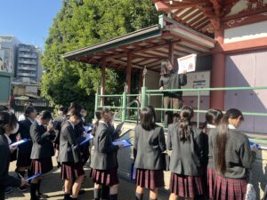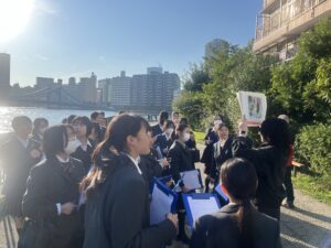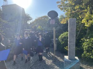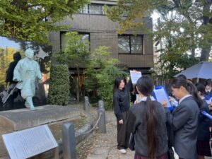 10月30日(木)に、中学1年生は「深川めぐり」を実施しました。これは、本校にゆかりのある深川という地域を知り、その歴史を学ぶとともに知識・教養を学び、公衆道徳を学ぶ目的があります。 当日は本校社会科の教員の説明を聞きながら、芭蕉庵跡、富岡八幡宮、 深川不動堂といった深川の名所・旧跡を見て回りました。生徒たちは、興味を持ちながら、楽しそうに深川の地を巡検していました。この経験を生かして、来年度の英語で深川を案内する「国内ウィンタースクール」へとつなげていきます!