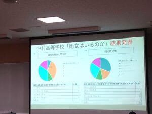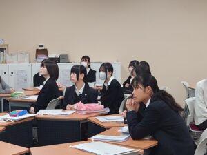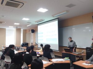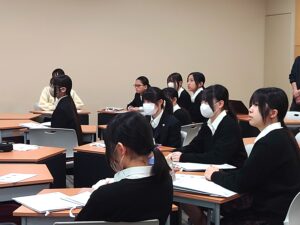 11月20日(木)に、5年生(高校2年生)の先進コース「データサイエンス」の授業において、東洋英和女学院大学 国際社会学部の長谷川かおり先生と、ゼミに所属する学生4名をお迎えし、出張授業を実施しました。