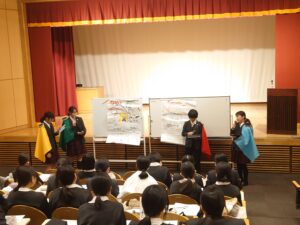 生徒たちは、実際の社会課題に目を向け、自分たちにできることを真剣に考えました。発表された企画は、どれも個性豊かで、ユニークなアイディアが光るものばかり。困っている人の立場に立って考え抜かれた内容からは、生徒たちの優しさと創造力が感じられました。