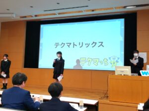 今年度は、イオンリテール・いちご・キモノハーツ・大和ハウス工業・テクマトリックス・日清製粉グループ・パナソニックエナジーの7社が参加企業としてミッションを提供しました。本校の生徒たちは、ITソリューションを通じて社会課題の解決に取り組むテクマトリックス株式会社のミッションに挑戦。