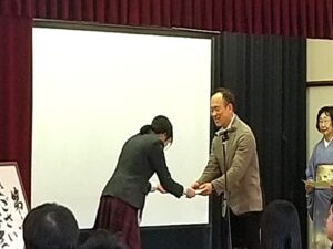 当日の表彰式では、入賞者一人ひとりが選者である俳人の先生方から直接賞状を授与され、会場は温かな拍手に包まれました。生徒たちは緊張しながらも晴れやかな表情で壇上に立ち、自分の作品が評価された喜びを噛みしめている様子でした。