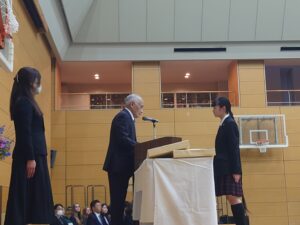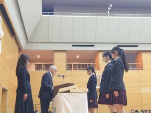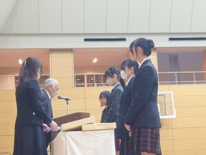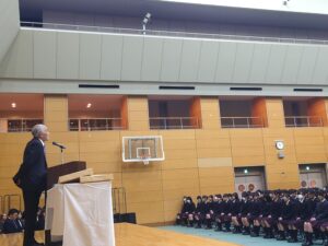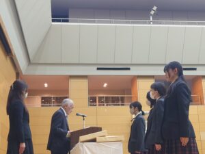 3月19日(木)に、「令和7年度修了式」を実施しました。 はじめに校長からの訓話があり、その後、精勤賞等の表彰が行われました。 さらに今年度、学校説明会等で活躍した中村AMBASSADORには感謝状が手渡されました。 修了式後には、新しいクラス編成も発表され、各学年で今年度最後の学年集会がありました。 春休み明けから、1つ学年が上がり新たなスタートとなります。 また4月に生徒の皆さんの生き生きとした中村生らしい顔を見れることを楽しみにしています!