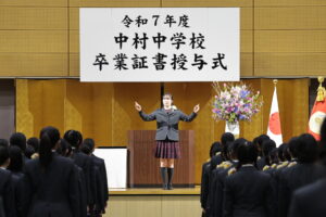 3月19日(木)に、まだ少し寒さが残る中、「令和7年度中学校卒業証書授与式」を挙行しました。 今年も多くの保護者の方に見守られながら行う卒業式を迎えることができました。 中学校卒業は、生徒たちにとって大切な節目となります。 式中では担任の先生より一人ひとりの名前が呼ばれ、代表者へ卒業証書が手渡されました。 高校という次のステージで更なる学びと活躍に期待しています。ご卒業おめでとうございます!