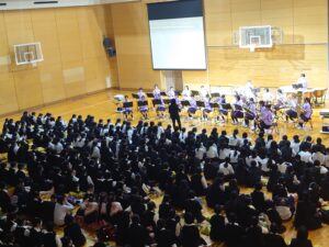 4月20日(月)に、「新入生歓迎会」を行いました。この4月に新たに中村生となった新入生を温かく迎えるため、校友会総務(生徒会)が中心となって企画し、さまざまな部活動が歓迎のパフォーマンスを披露しました。