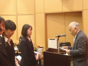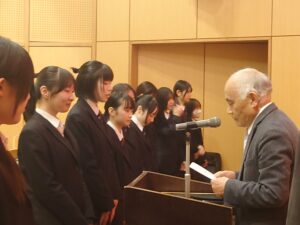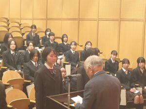 当日は、中学・高校6学年それぞれのクラスから2名ずつ代表委員が集まり、遠藤校長より任命状を受け取りました。委員会活動は、学校生活を円滑にし、日々の学びや生活を支える大切な役割です。任命状を受け取る生徒たちの姿からは、その責任をしっかりと受け止め、新年度への意欲が感じられました。