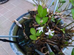 2,私事ですが、本校の校章であるミツガシワを2年前に購入し育ててきました、1年目は花が咲かなかったのですが、今年花を咲かせてくれました。真っ白で可憐な花で、これも新学期をむかえた生徒たちと