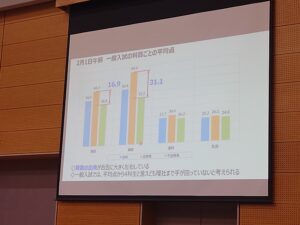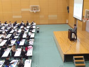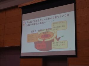 受験生が入試体験をしている間に、保護者の方対象に「入試について」概要やポイントを江藤教頭がお話ししました。