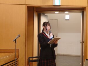 学校の教育方針や生徒一人ひとりを大切にする中村の姿勢について語り、来校していただいた方の緊張を和らげる穏やかな雰囲気で始まりました。