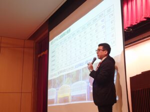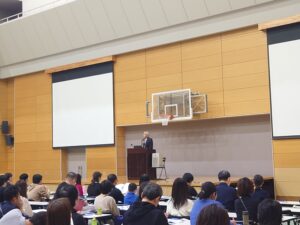 受験生が入試体験をしている間に、保護者の方対象に「入試について」概要やポイントを江藤教頭がお話ししました。
