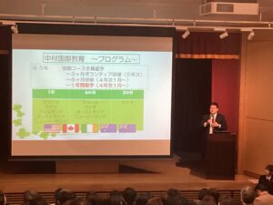 「中村の魅力をおさらい」というサブタイトルでしたが、中村で身につくチカラ、入試制度、進学指導、英語・国際教育について改めてお話しさせていただき、さらに中村Ambassadorの生徒たちのプレゼンテーション・座談会も聞いていただきました。