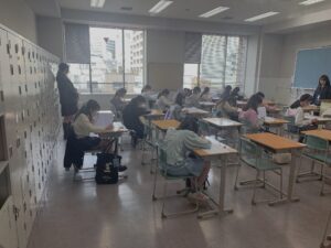 受験生は、集中して問題に取り組んでおり、1年後(2年後)の入試本番を見据えて、本校の入試問題にチャレンジしました。