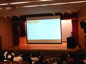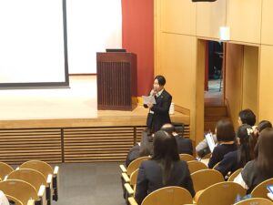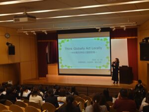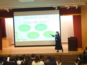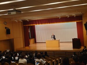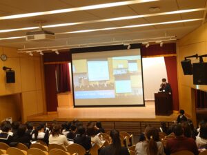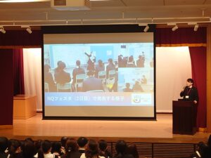 外国語科の遠田教諭が、中村の国際教育について話しました。
