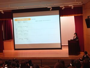 入学対策部の大場教諭が、今年度の入試情報や受験に向けたアドバイスなどを詳しくご説明しました。