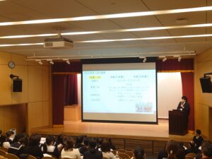入学対策部の関口教諭が、本校の教育内容・3つのコースの説明をしました。